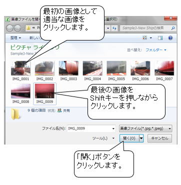 (3) 複数の画像を選択して「開く」ボタンをクリックします。