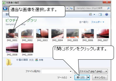 「元画像確認」ボタンをクリックすると下図に示す「元画像の確認」画面が表示されるので画面の右上にあるアイコンを「大アイコン」状態にします。