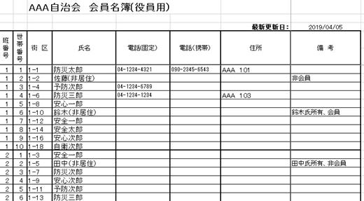 「基本情報」シートに入力された世帯主のデータをベースに「会員名簿(役員用)」シートを更新することができます。
