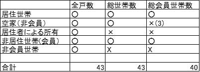 総世帯数、総会員世帯数との関係は以下の通りです。 特に、会員世帯数には非居住世帯(会員)=”稀に居住する非居住世帯”が含まれていることにご留意ください。