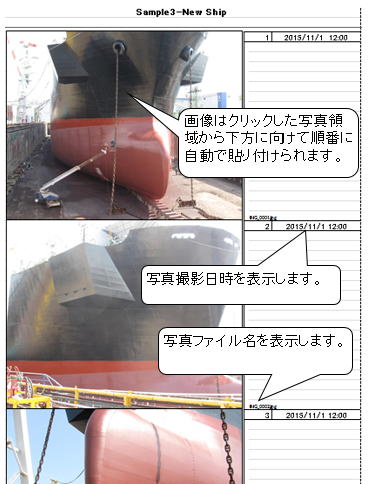 右側に詳細の写真を貼り付ける等によりレポートの体裁を整えることが出来ます。