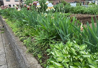 現在は畑の仲間内で管理している。写真のように5月の上旬はジャーマンアイリスが咲き競う。